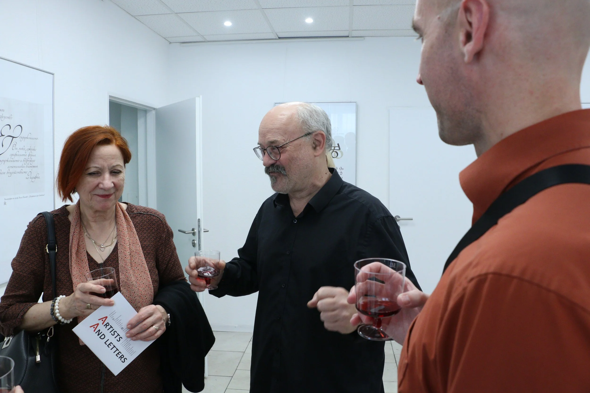 Изложбата „Художници и букви“ представи творби, чиито автори използват типография извън обичайната практика, за да визуализират авторовия текст като изразно средство за нуждите на графичния дизайн. Така Илия Груев, Регина Далкалъчева, Красимир Андреев, Капка Кънева, Бояна Павлова и Емил Марков представиха произведения, освободени от всякаква утилитарност. Артистите трансформират кирилския буквен знак от средство в единствена цел на своята изява. Резултатът е разнолика и вълнуваща колекция калиграфии,типографики, шрифтови рисунки.