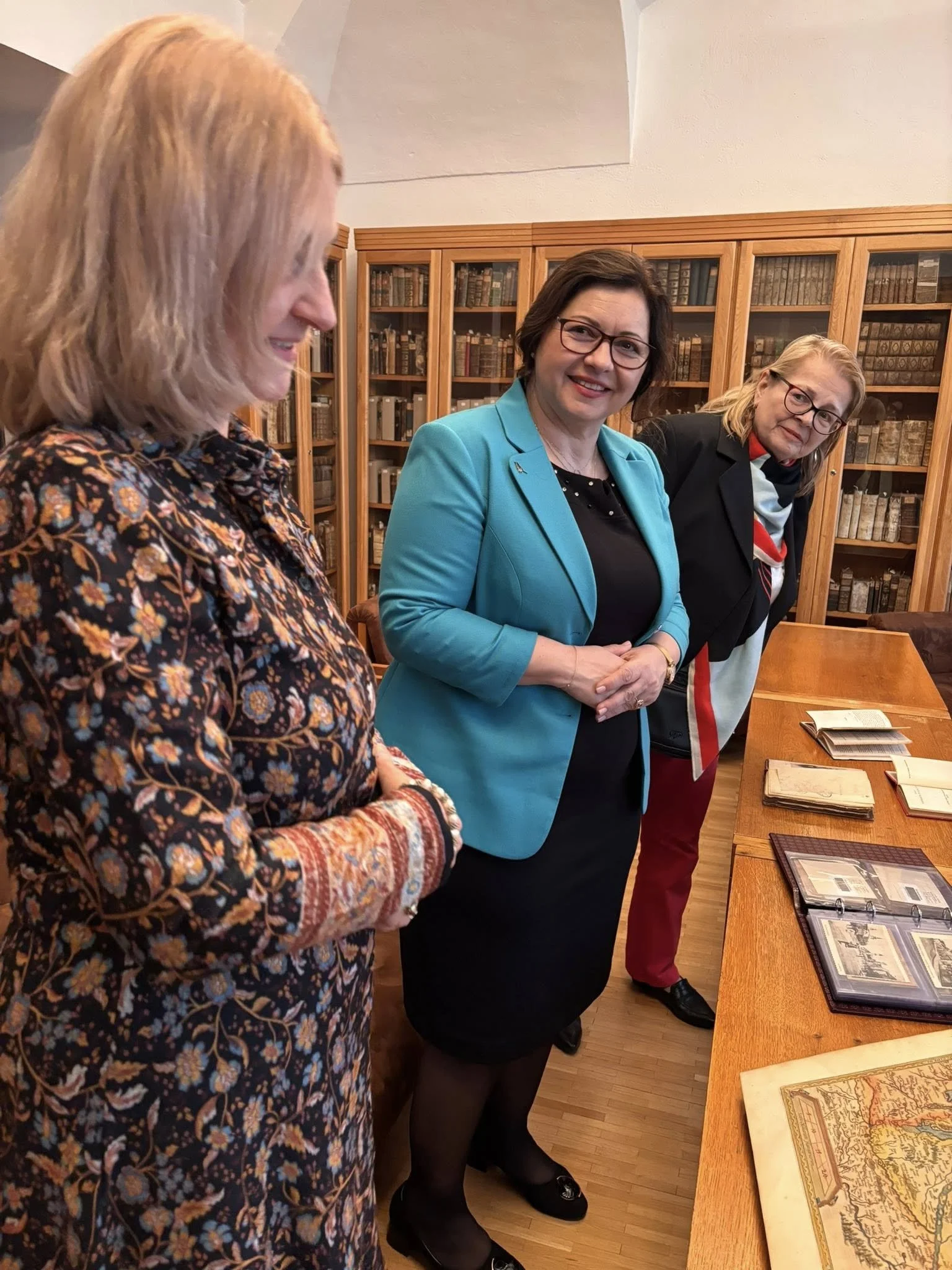 Те бяха посрещнати от директора на една от важните и мащабни като дейност институции в Банска Бистрица - държавната научна библиотека г-жа Олга Докторова и нейния екип. Под нейно ръководство са освен библиотеката и модерна галерия, музей за приложни занаяти, център за славянски изследвания, сцена и ателие за куклен театър, обучителни кабинети по испански, френски, китайски и английски езици, лаборатория за реставрация на стари книги и богато фондохранилище. Бяха обсъдени идеи за нови проекти - изложби, съвместно с посолството и Българския културен институт в Братислава, които да гостуват в пространствата на библиотеката, както и възможности за организиране на премиери на тематични книги, концерти, филми.