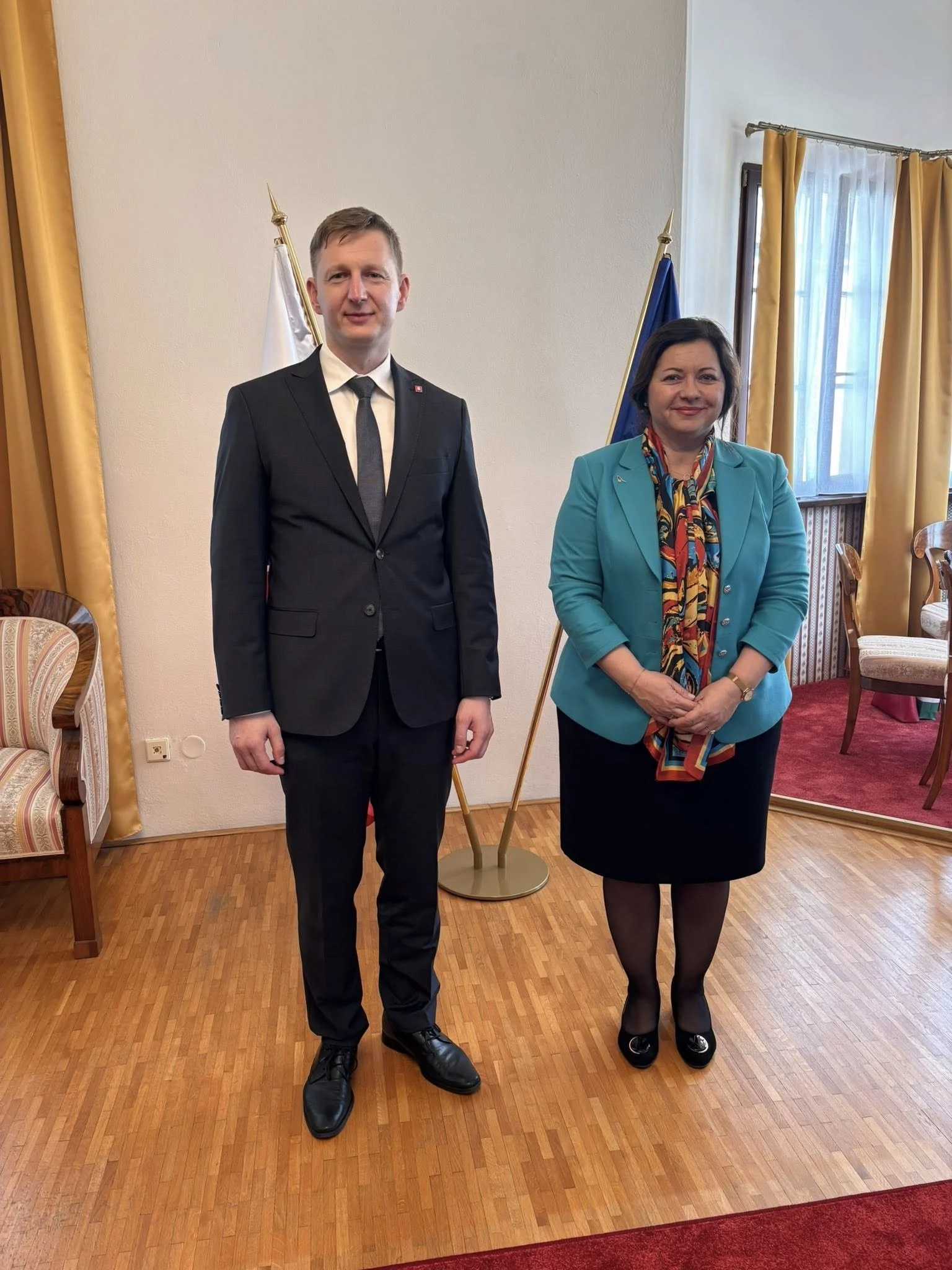 Н. Пр. Йовева-Димитрова бе приета на протоколна среща с ръководителя на изнесена канцелария на президента Петер Пелегрини в Банска Бистрица - г-н Михал Фрич. Срещата премина в конструктивен диалог, г-н Фрич пожела успешен манат на г-жа Йовева и я увери, че може да разчита за съвместни инициативи и партньорства. На свой ред г-жа Йовева запозна г-н Фрич за първите си инициативи и планове за задълбочаване на българо-словашките икономически, културни и туристически контакти.