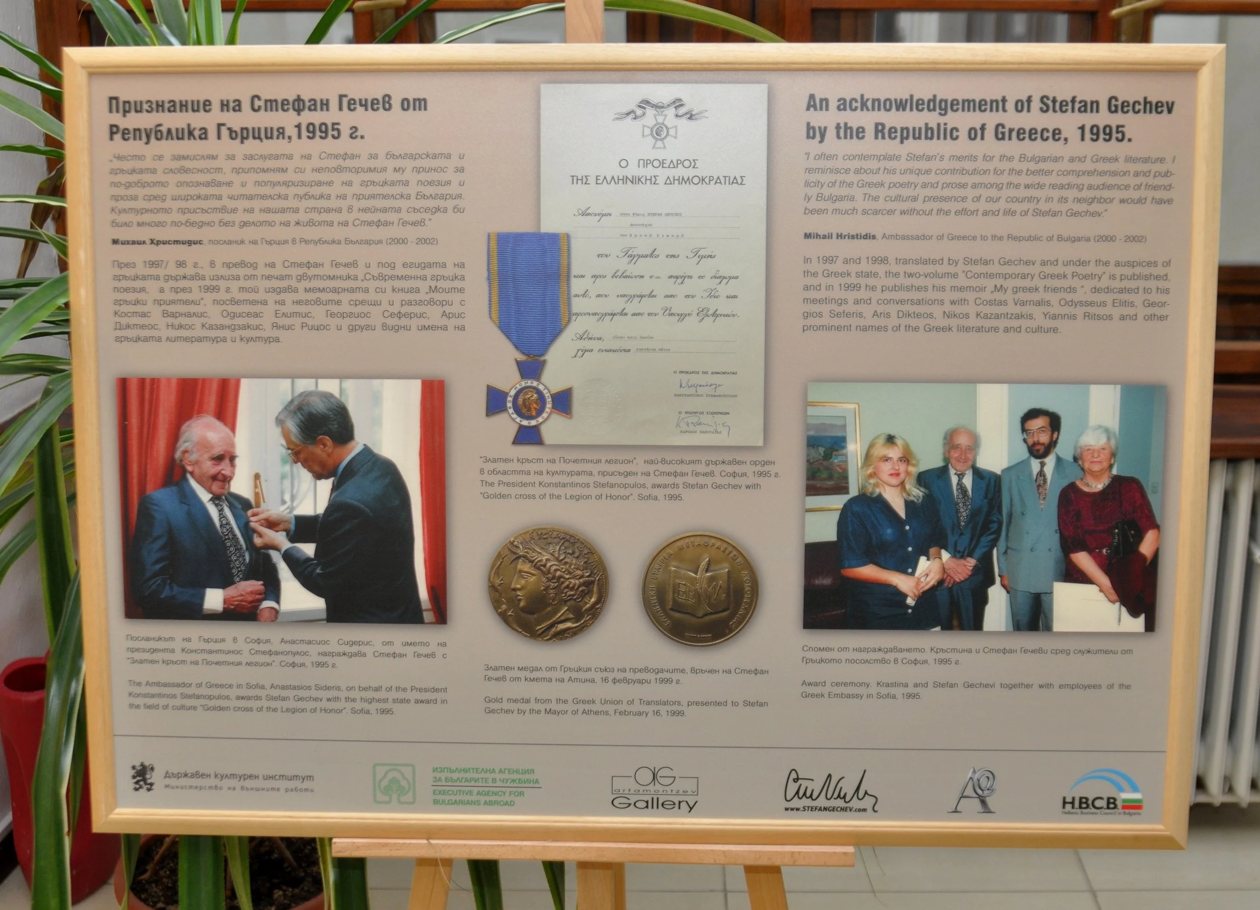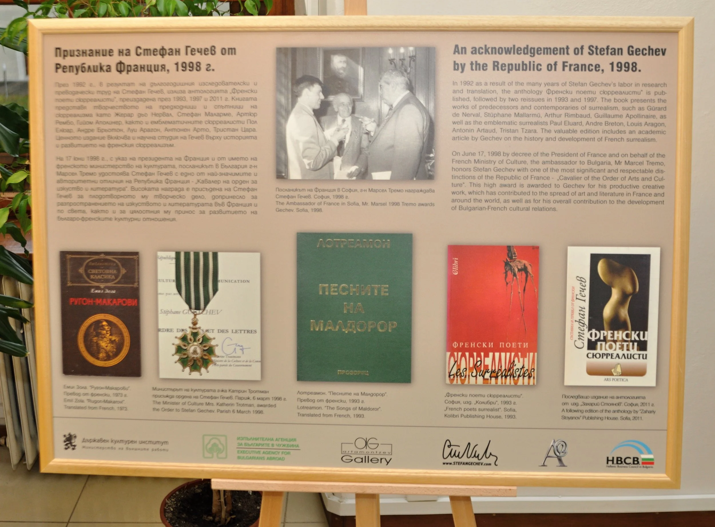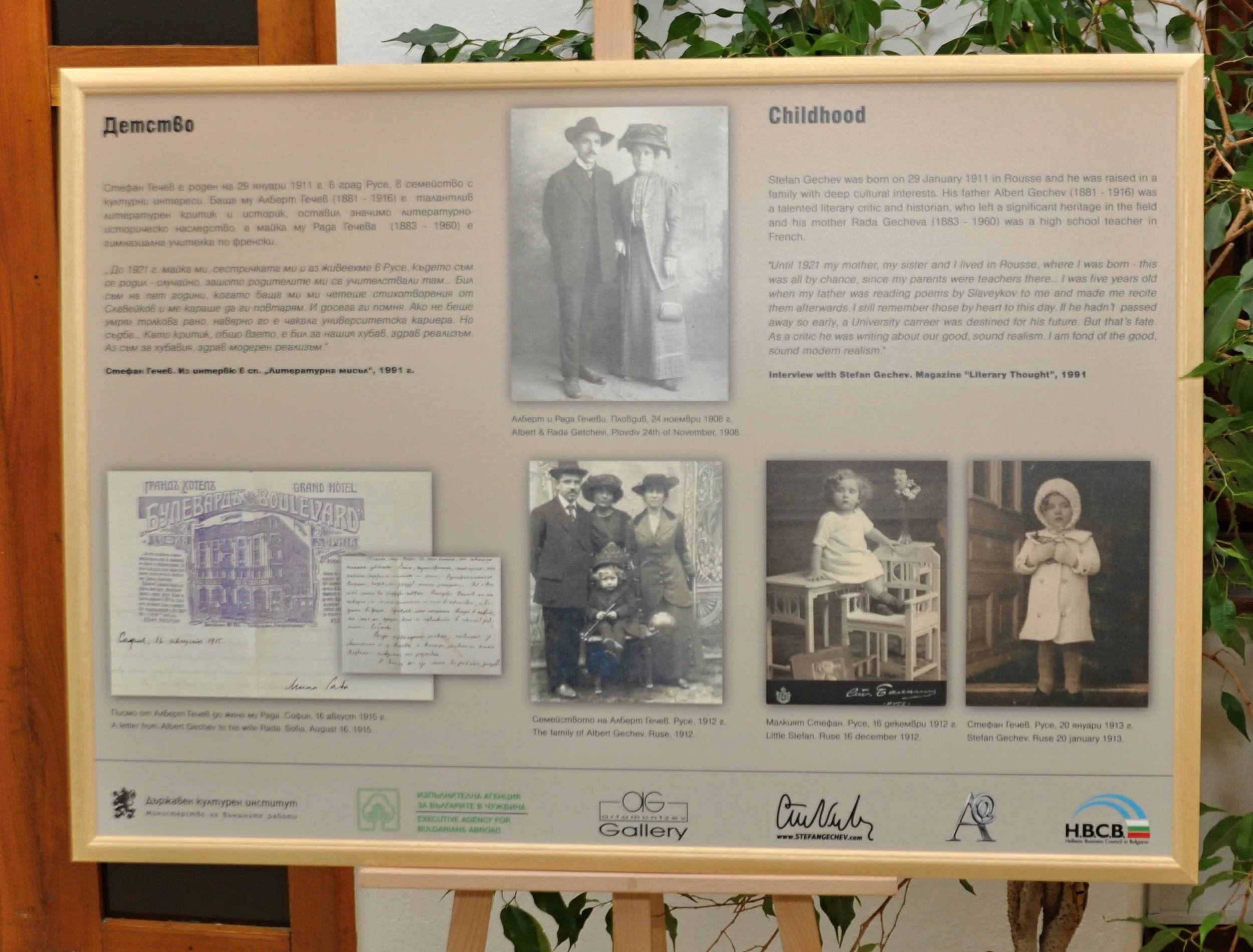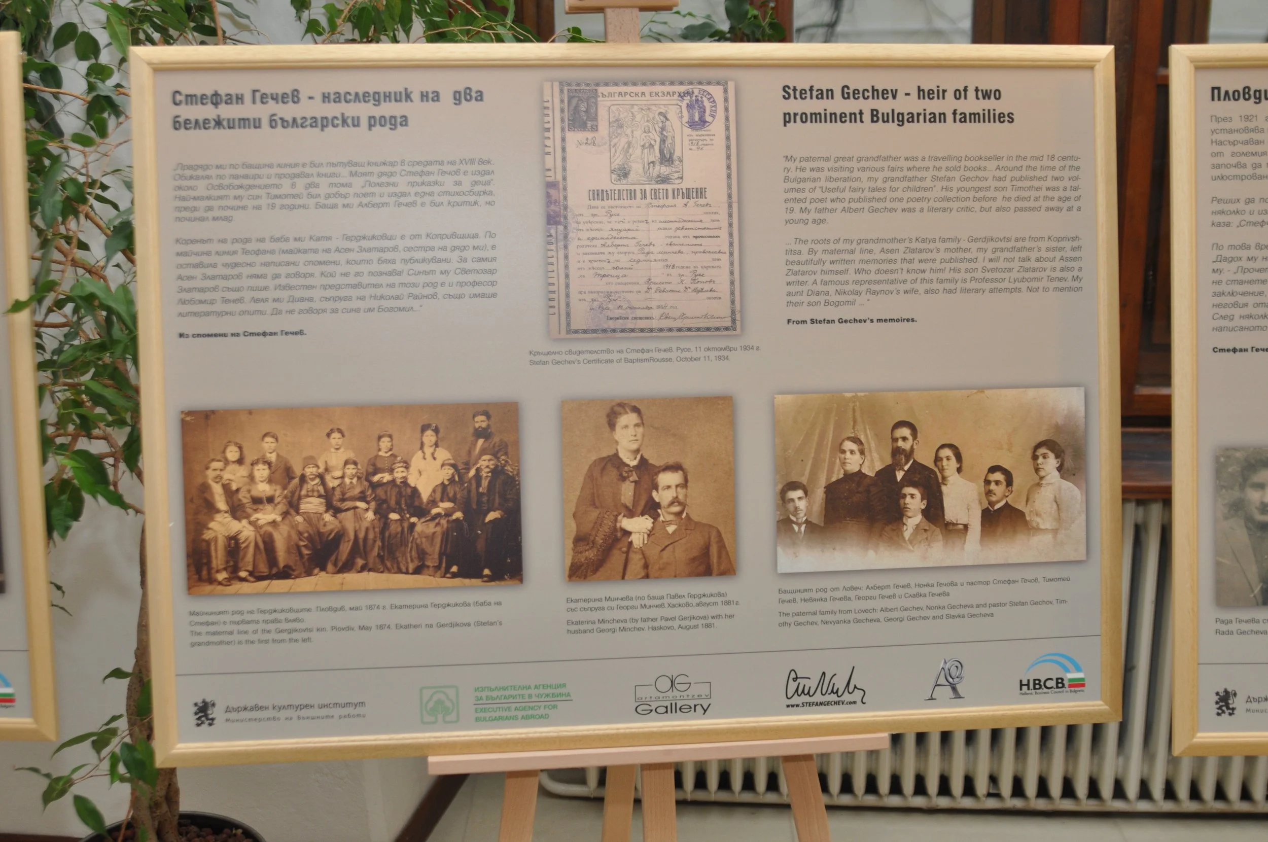 Výstava pozostáva z bohatej škály originálnych materiálov. Obsahuje rukopisy, dokumentov, fotografií, prvé vydania kníh a umeleckých diel, ako aj informácie o rozsiahlych intelektuálnych známostiach a aktivitách Stefana Gečeva. Nechýbajú ani básne, umelecké preklady a memoárové texty autora, zozbierané na 18 paneloch v bulharčine a angličtine, ktoré dopĺňa resumé v slovenčine. Výstava mala veľký úspech v Sofii, Ruse, Plovdive a Budapešti. Okrem Stefana Artamonceva je spoluautorkou výstavy aj Rumjana Pašalijska.