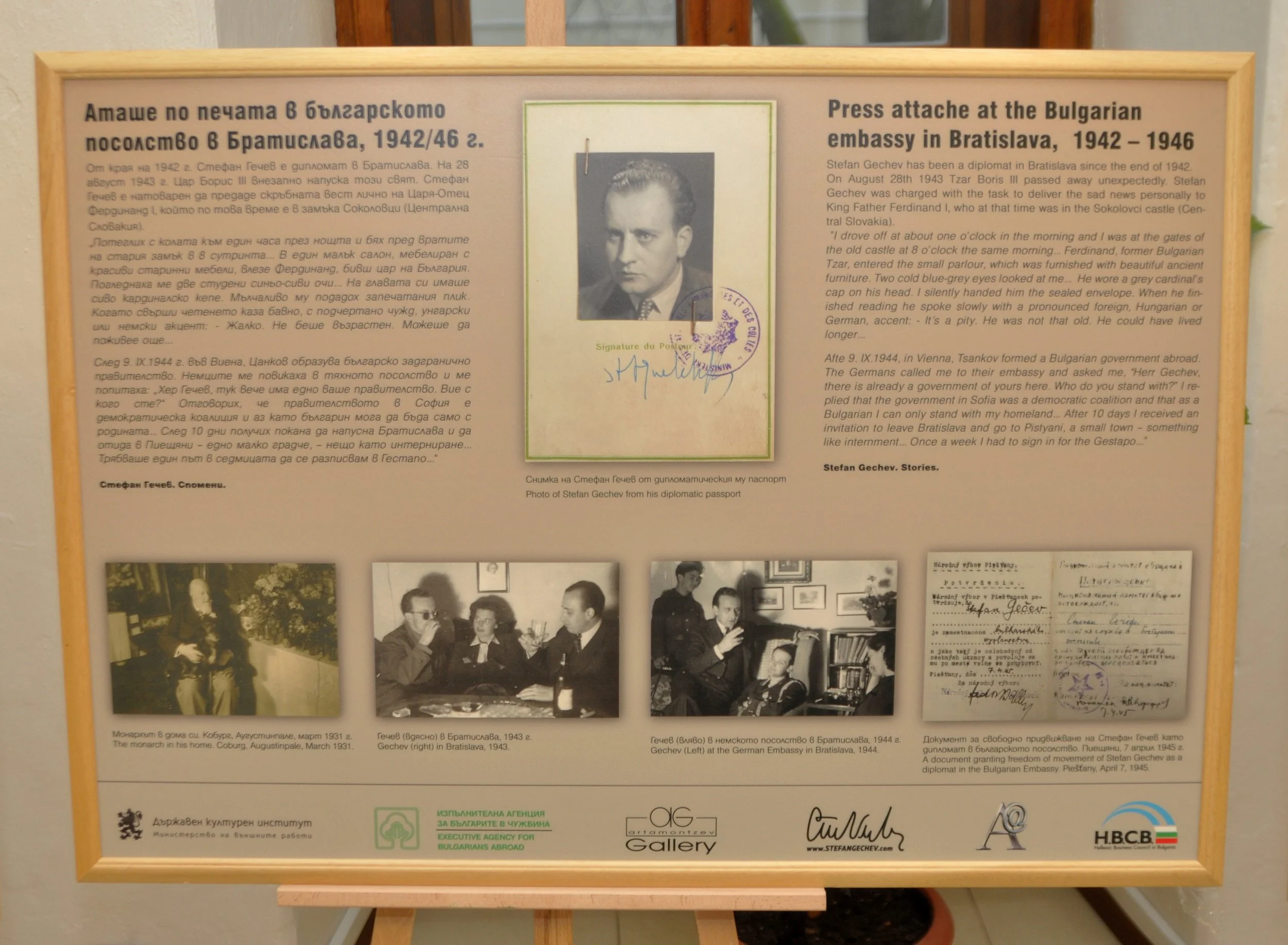 Riaditeľka BKI pani Vania Radeva poodhalila historické súvislosti, v ktorých prebiehala diplomatická misia Štefana Gečeva na Slovensku počas druhej svetovej vojny. Spomenula politiku bulharského štátu a spoločnosti a jej zásluhy pri záchrane 50 000 bulharských Židov pred deportáciami do táborov smrti. Pre slovenského diváka sú zaujímavé najmä detaily stretnutia Gečeva s cárom Ferdinandom I. v kaštieli v Sokolovciach na strednom Slovensku, pri ktorom osobne doručil smutnú správu o náhlej smrti jeho syna cára Borisa III. V roku 1944 Stefana Gečeva vyhnali Nemci z Bratislavy a internovali ho v Piešťanoch po tom, ako sa vyhlásil za stúpenca vlády v Sofii.