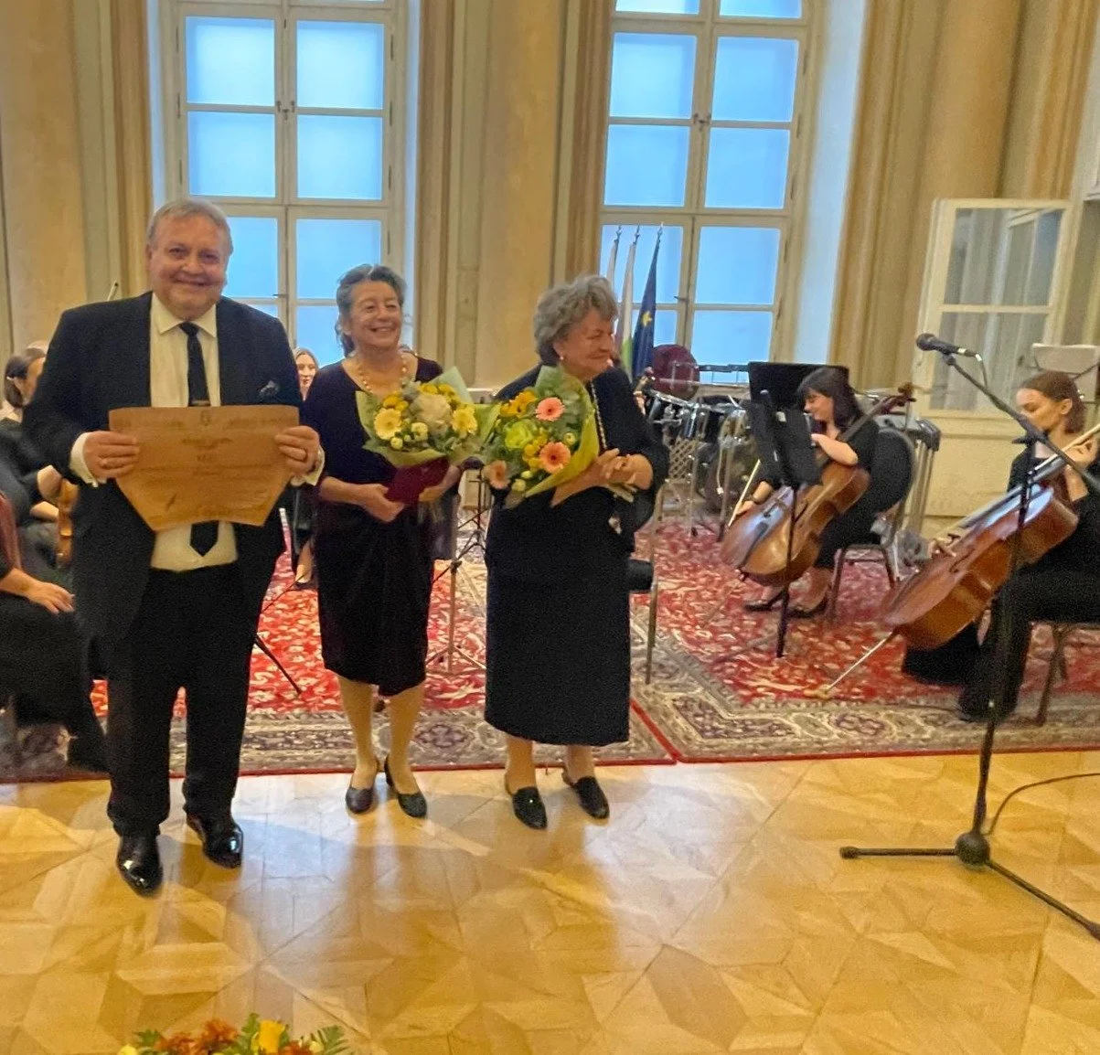 Koncertu predchádzala slávnostná časť, v ktorej po úvodnej reči veľvyslanca Petkova nasledoval ceremoniál odovzdania štátnych vyznamenaní profesorke Márii Dobríkovej a doktorke Márii Koškovej. Dekrétom prezidenta Bulharskej republiky pána Rumena Radeva udelil veľvyslanec prof. Márii Dobríkovej, vedúcej katedry slovanských filológií na Komenského univerzite rád sv. Cyrila a Metoda za jej mimoriadne zásluhy vo vzájomnom rozvoji bilaterálnych vzťahov v oblasti vedy, vzdelávania a kultúry a Dr. Koškovej, ktorá je autorkou najvýznamnejšieho slovníka, rád Sv. Cyrila a Metoda druhého stupňa, strieborný s oranžovou stuhou, za jej významný prínos v rozvoji bilaterálnych vzťahov v tej istej oblasti. Veľvyslanec im odovzdal vysoké rády pred cteným početným publikom.